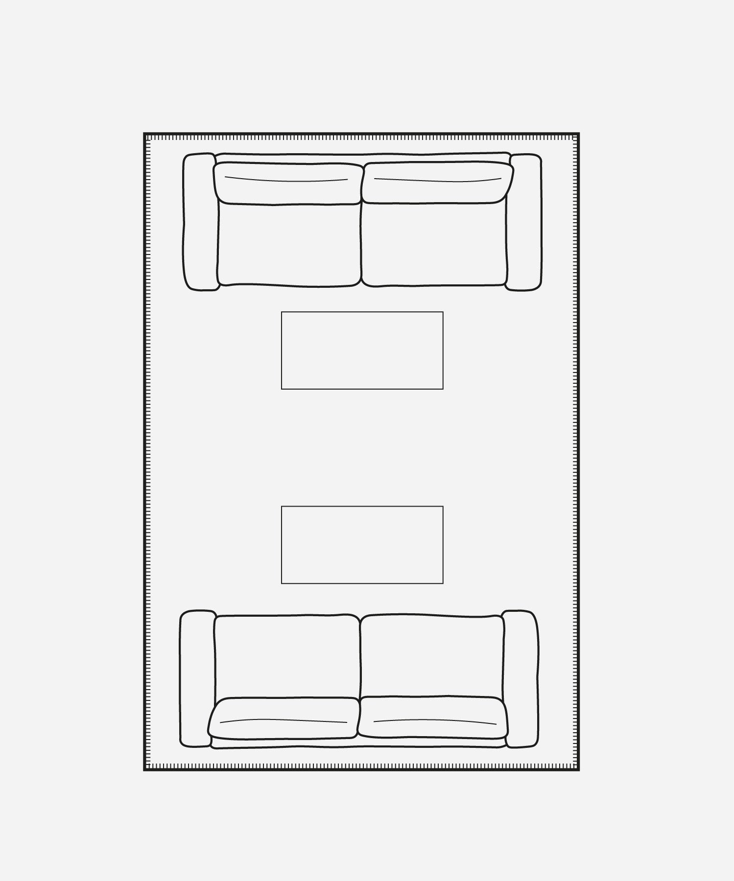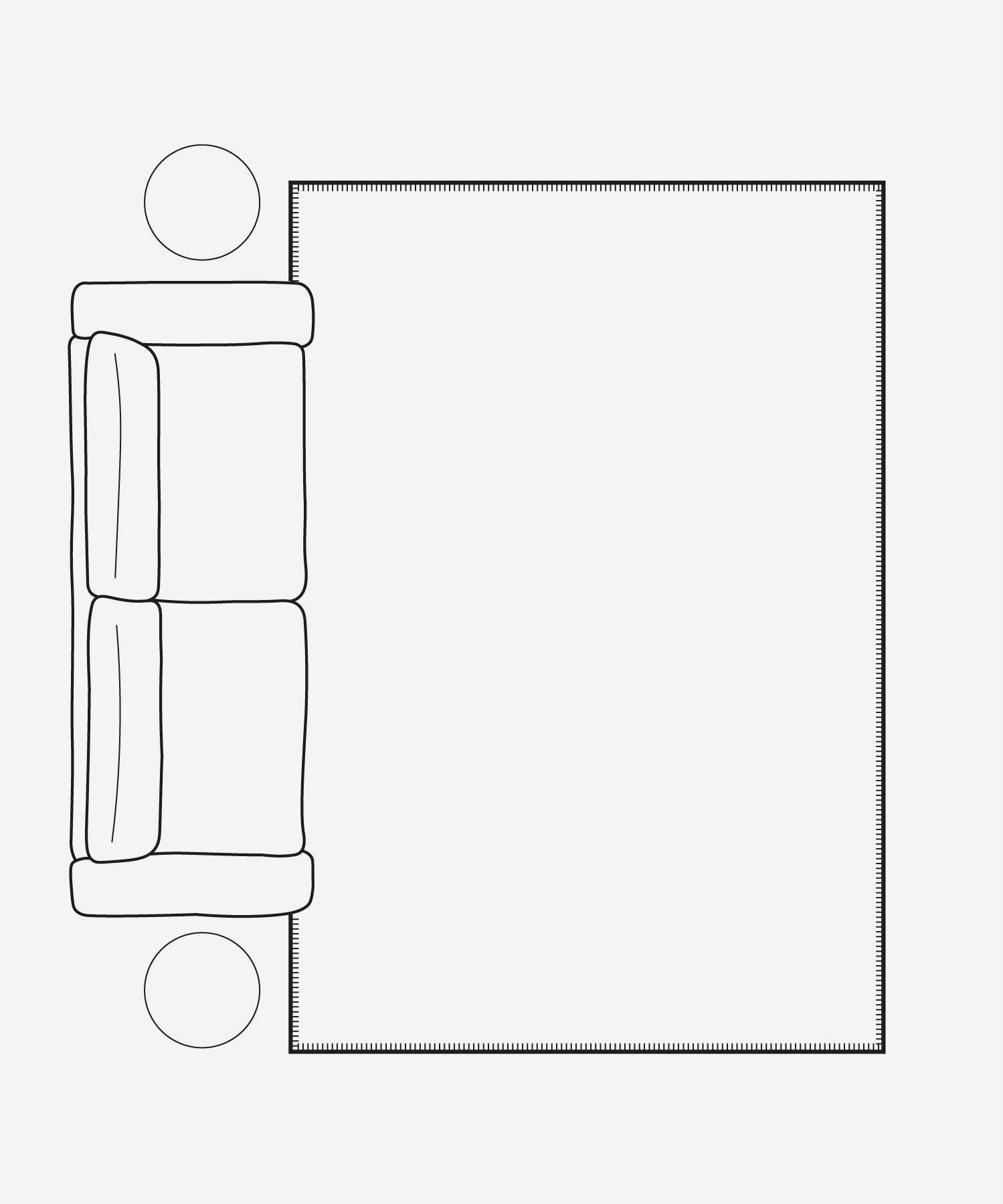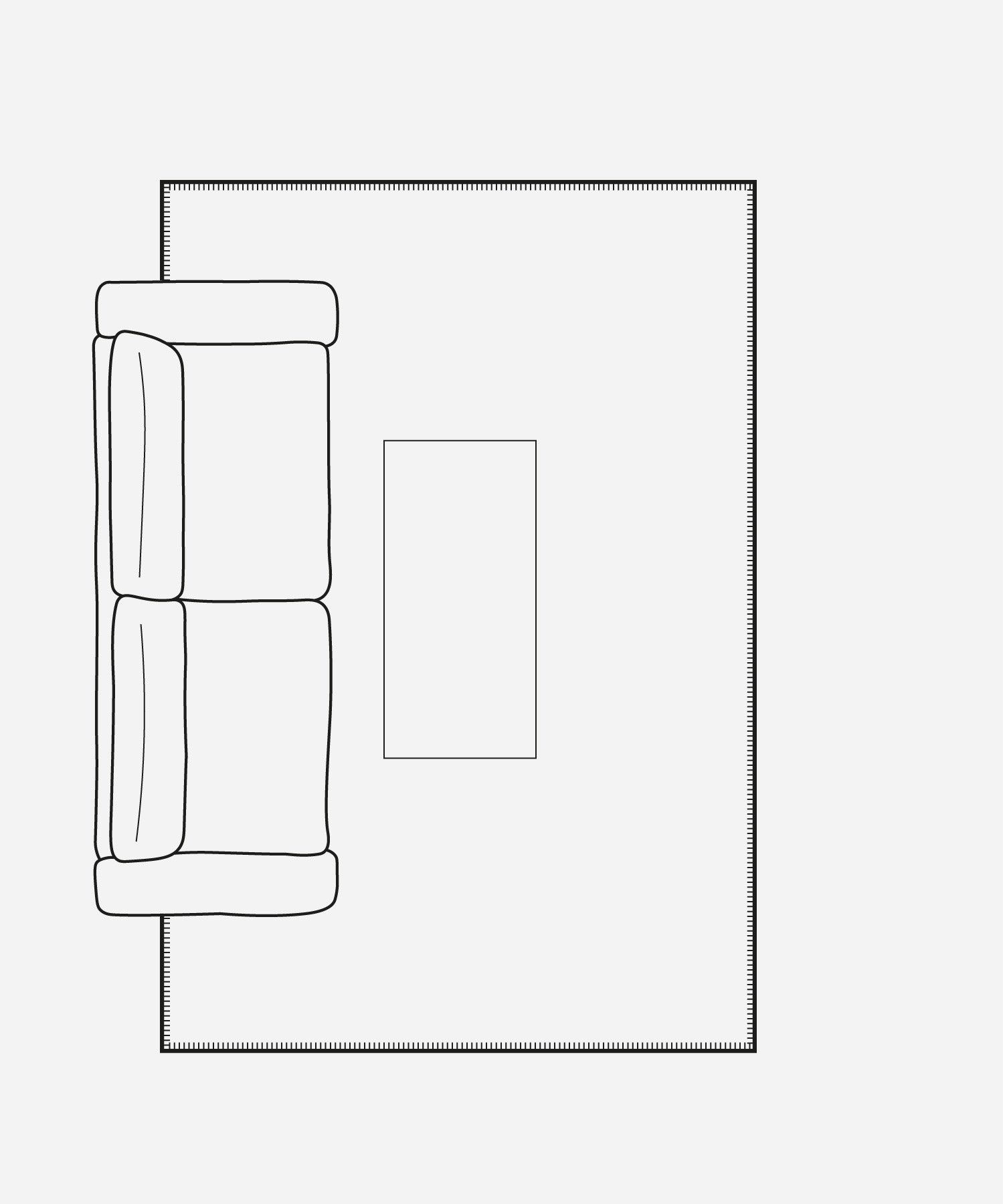 Wähle einen Teppich, der auf beiden Seiten etwa 20 cm breiter als dein Sofa ist. Unsere Größen 200 × 300 cm oder 250 × 350 cm sind dafür wie geschaffen.