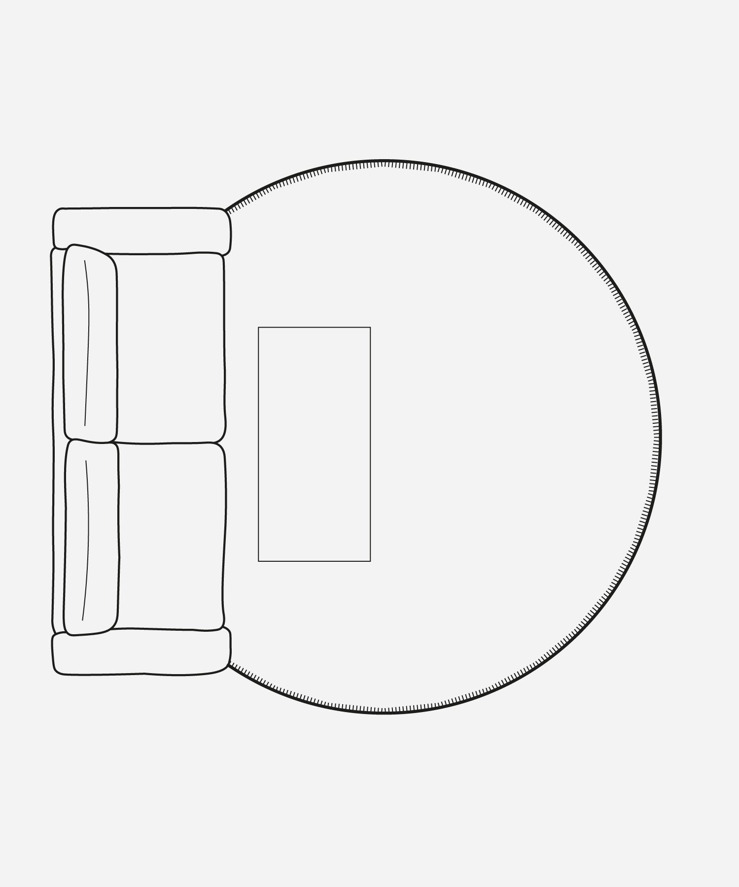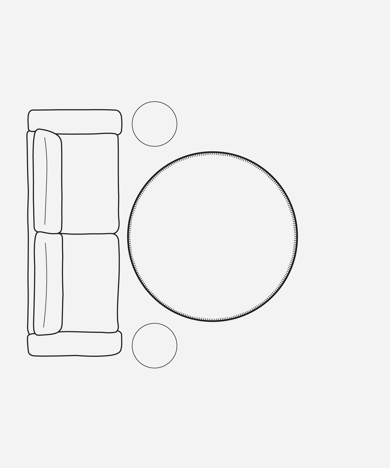 Unsere Grössen ⌀240 oder ⌀300 passen perfekt – für einen fliessenden, mühelosen Übergang vom Sofa zum Teppich.
