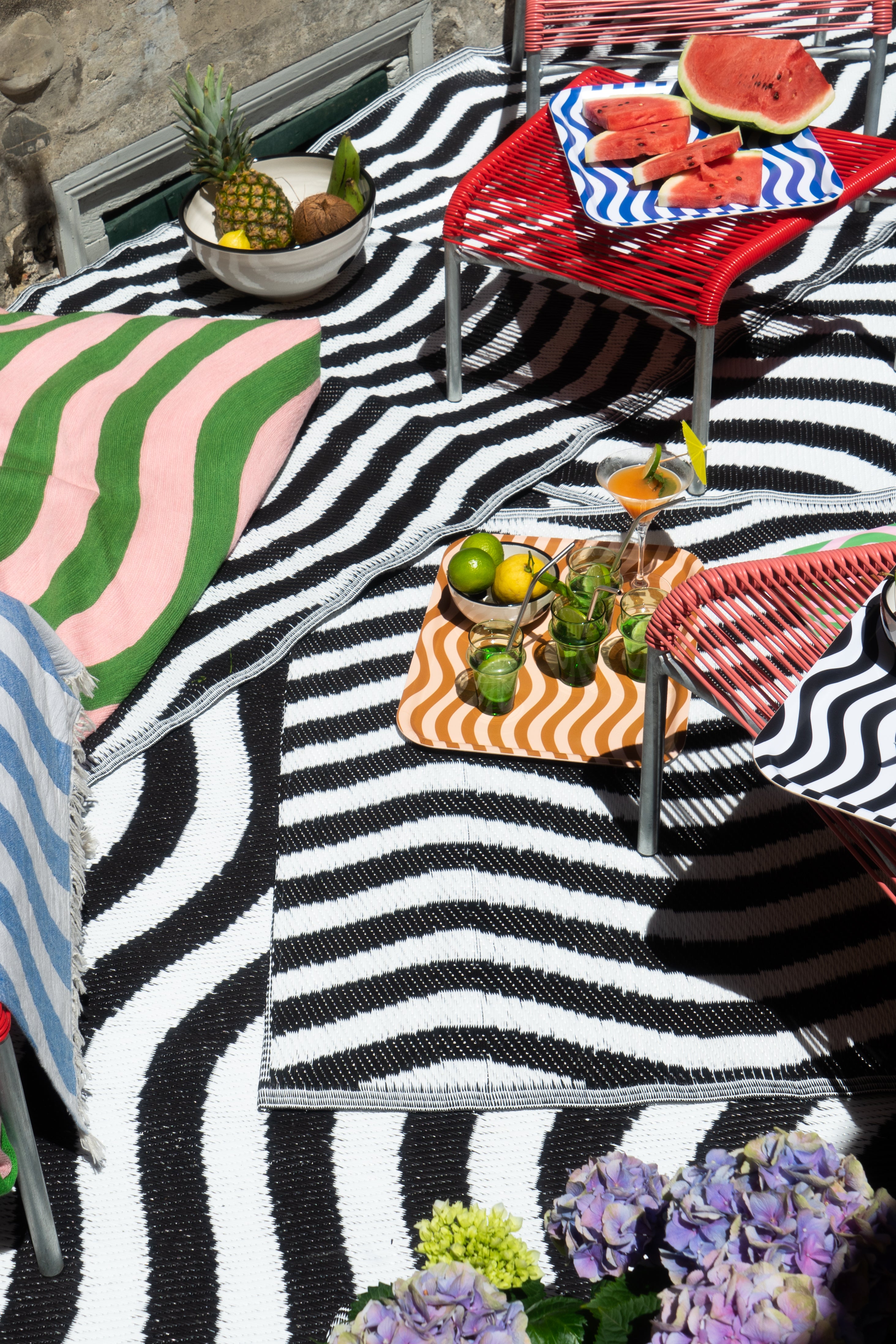 Das Madness Kissen bringt mediterrane Luft, gute Vibes und ein bisschen Madness direkt in dein Zuhause. Mit seinen geschwungenen Linien, Retro-Farben und dem markanten Grafikmuster ist es wie ein Kurzurlaub fürs Sofa – ganz ohne Rückflug. Gefertigt aus 100 % Baumwolle und veredelt mit strukturierter Stickerei aus 100 % Wolle, ist es nicht nur gemütlich, sondern auch ein echter Eyecatcher. Ob solo oder im Mix – Madness macht jedes Sofa, Bett oder jede Lounge ein bisschen frischer und fröhlicher. Teil der Madness-Kollektion – perfekt kombinierbar mit den passenden Handtüchern, Outdoor-Teppichen und Tabletts. Für Urlaubsgefühle. Das ganze Jahr.