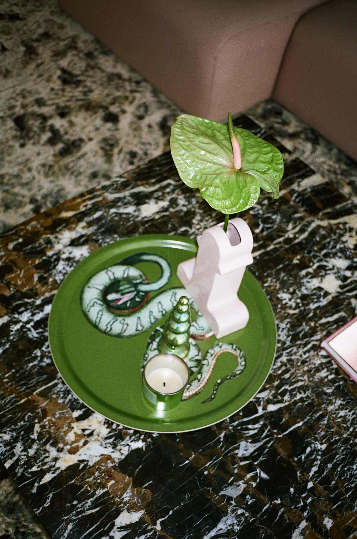 Das Serpentes 1 Tablett aus der Bestia-Kollektion zeigt eine fein gezeichnete Schlangenillustration auf einem runden, minimalistischen Format. Das fotorealistische Motiv wirkt fast wie tätowiert auf dem soften, einfarbigen Hintergrund – ein stilles, aber starkes Statement. Ob solo auf dem Tisch, als Deko-Objekt oder zusammen mit unserem Tablettständer als leichter Beistelltisch – Serpentes 1 bringt Kunst, Funktion und Charakter in dein Zuhause. Für alle, die Design mit Biss lieben.